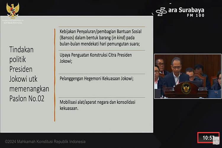 TIMES Kalbar/Ketua KPU RI Hasyim Asy'ari dalam sidang lanjutan PHPU di Mahkamah Konstitusi, Jakarta. (FOTO: Tangkapan Layar)