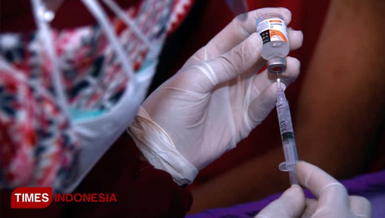 TIMES Kalbar/Salah satu tenaga kesehatan saat mengisi dosis vaksin untuk disuntikkan. (FOTO: Adhitya Hendra/TIMES Indonesia)