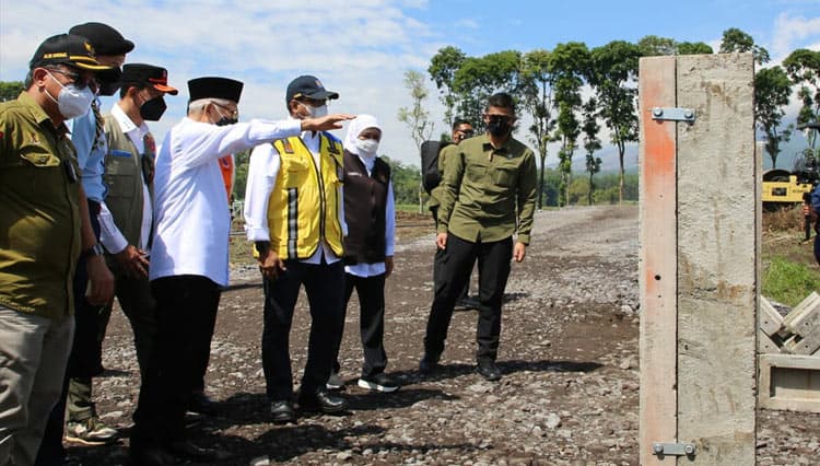 TIMES Kalbar/Sekjen PUPR RI Mohammad Zainal Fatah dampingi Wapres RI KH Ma'ruf Amin meninjau lokasi pembangunan Hunian Sementara (Huntara) bagi korban terdampak erupsi Gunung Semeru di Desa Sumbermujur, Kecamatan Candipuro, Kabupaten Lumajang.